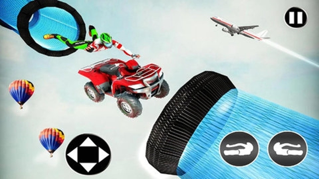 准备在危险的轨道上玩赛车四轮摩托车,你将不得不参加沙滩车自行车,并在天空高轨上制作特技。巨大的特技曲目是由空中的巨型斜坡制成的。要成为四轮自行车骑行的主人,你必须掌握大型赛车摩托车展示极端四轮摩托车不可能的特技。