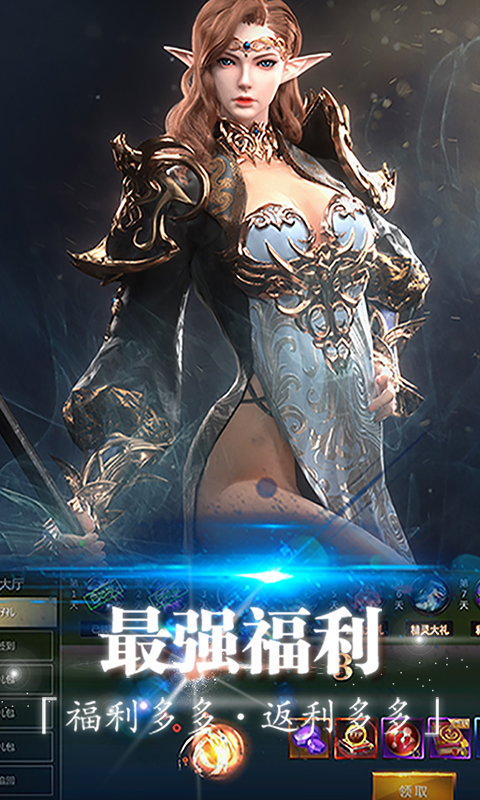 3、七天好礼:活动期间,玩家每天登陆游戏即可免费领取坐骑、羽翼、经验、装备、钻石、称号等各种大礼!