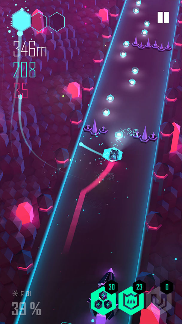 2、霓虹版绚丽的特效搭配上这里的音乐律动是很不错的,跟随着节奏去进行游戏躲避障碍物;