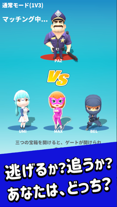 mspo TREASURE是一款多人实时对战游戏,游戏采用卡通风格设计画面,玩家们将化身为小偷需要和同伴一起开启宝箱并顺利的逃脱,注意不要被警察追到了,顺利的逃掉即可获得胜利。