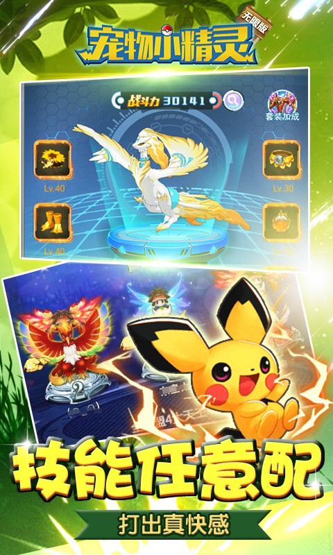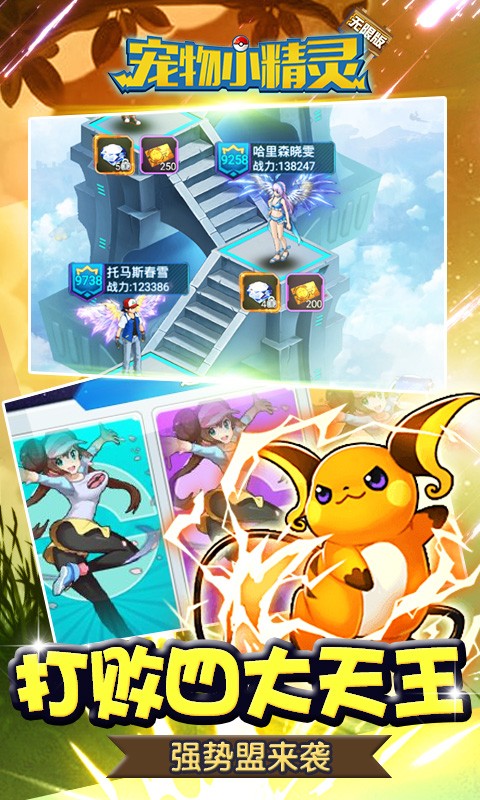 2、经典又熟悉的宠物小精灵自由获取,打造最强阵容;