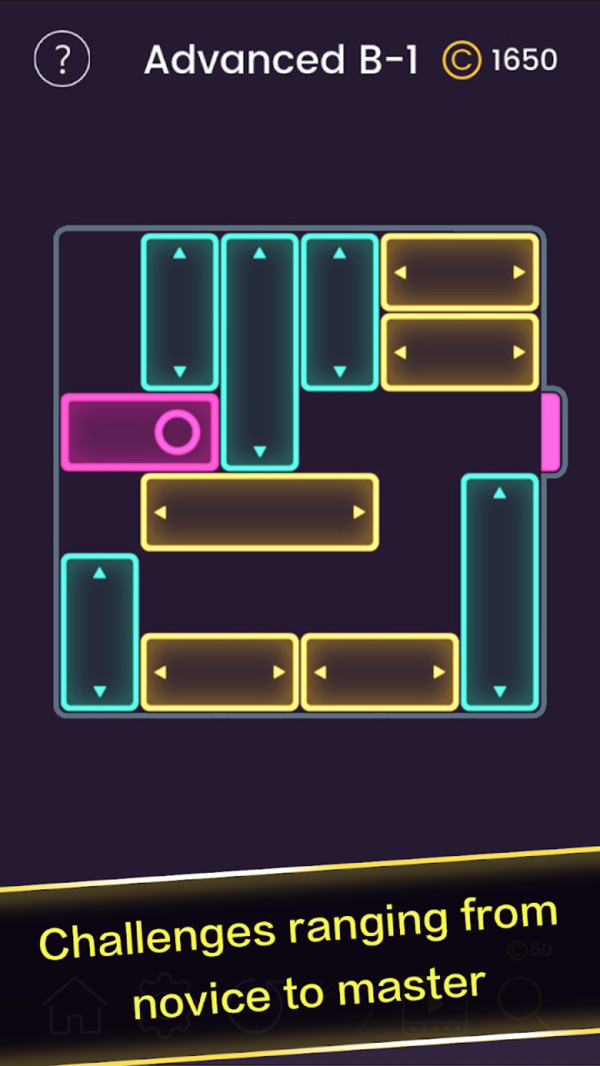 霓虹逃生块是一款简单易上瘾的滑块益智游戏。利用霓虹灯的特点将游戏中的画面设计成感觉就像黑夜中的各色的灯光一样,非常的美丽的游戏画面,只需要轻轻滑动滑块就可以闯关了。喜欢的玩家快点下载吧。