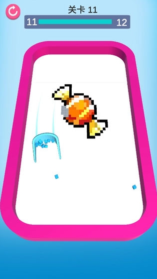 2、通过不断的点击操作,收集散落方块填补;