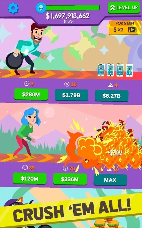 升级保龄球数量或提高其赚钱能力来训练他们。