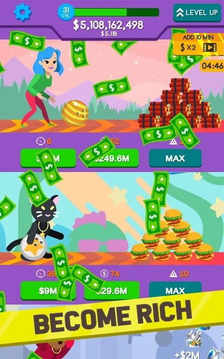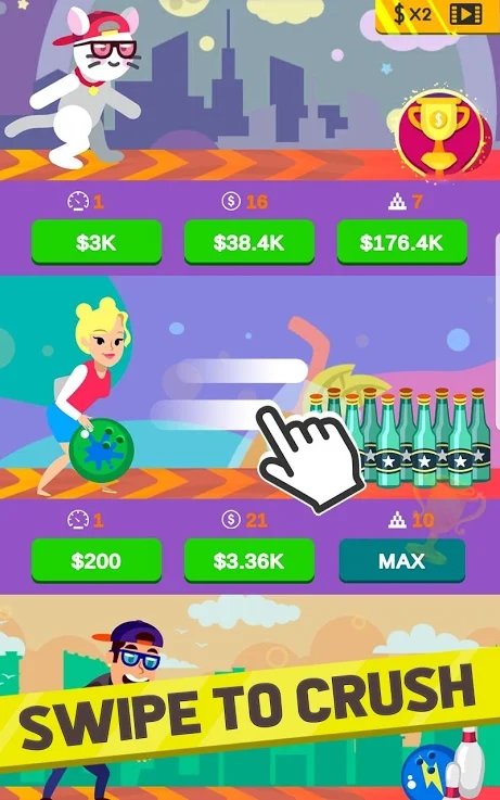 成为最富有的经理!升级保龄球设备以吸引更多角色加入您的保龄球馆,您可以通过增强力量,