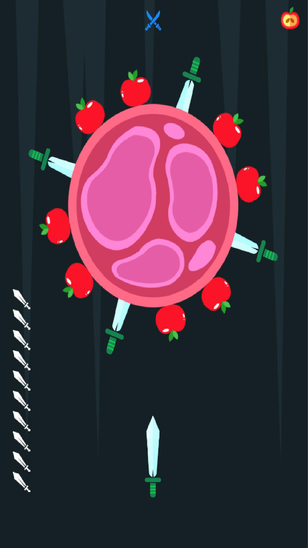 4、避开目标物上其他的飞刀,精准的击中靶子;