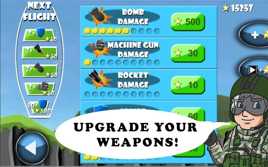 收集电源UPS,以提高你的飞机在游戏中。升级每个级别之间的飞机,以提高其迷死人!