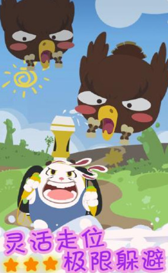 这个兔子有点猛是一款非常好玩的休闲游戏,游戏画面制作非常精美,灵活的控制兔子走位去躲避天空中老鹰的攻击,期间还要寻找合适的角度去攻击老鹰,将老鹰成功的击落就可以通关了,每隔五关还会出现一个特别强大的老鹰,防御和速度都会有一定的增强。