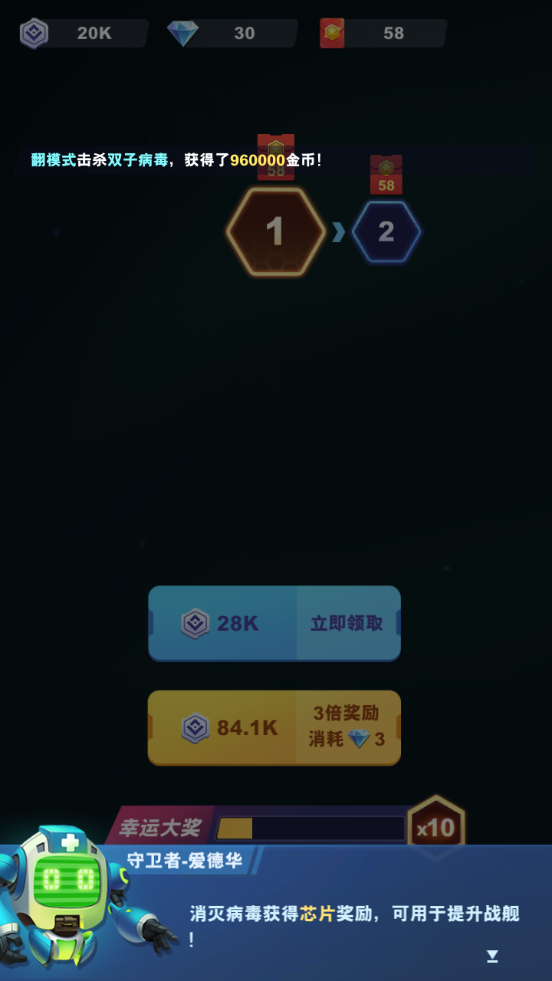 最爱疯狂战机游戏是一款十分有趣的弹幕射击游戏。最爱疯狂战机是一个用飞机去打病毒还可以赚钱的游戏,最爱疯狂战机手游是一个打一下病毒就可以领红包的平台,0.3元可以秒到,玩法简单有趣,用来休闲减压就非常不错,喜欢玩这类游戏的可以免费试试。