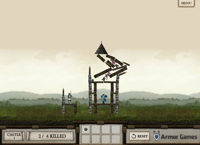 粉碎城堡是一款物理性质的游戏谜题,在这款游戏中我们的国王变卖了军队来满足他的愿望,现在敌人开始了自己的侵略,你需要去帮助这个国王来抵御敌人的侵略,游戏中你只剩下一个工具,那就是可靠的投石机,使用投石机来击退试图侵占你领土的敌人,快来开始你的战斗吧。