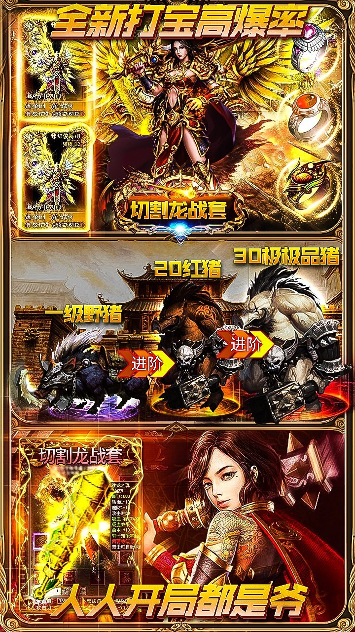 1、金光闪闪的战斗场面和武器装备,让你感受到一种土豪战斗的感觉。