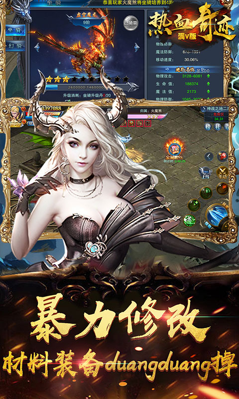 VIP,钻石免费送,白银特权免费送,副本狂掉钻石,装备全靠打,时装boss掉;《热血奇迹-满V版》是一个以西方魔幻为题材的大型多人竞技即时制角色扮演类手机游戏。游戏融入轻操作立体化战斗,玩家可把握大招释放顺序,巧妙搭配实现打断、秒杀等战斗技巧。爽快的连击战斗,原画级的唯美场景,感人至深的精彩剧情,使玩家能够轻易融入到美妙奇幻的世界,寻找本真的快乐。