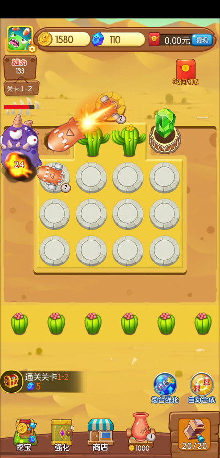 炮与兽是一款塔防类型手游,不仅可以闯关体验塔防带来的乐趣,还可以升级合成炮塔,在面对BOSS的时候有更强的能力,在商店中和其他地方购买一些东西,这样才能赚取更多给红包,得到的收益都是不错的。
