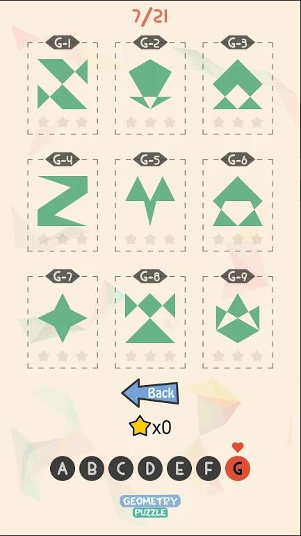 几何拼图游戏是一款有趣的闯关休闲手游,很烧脑,玩家可以在其中闯关的同时开发智慧,挑战您的极限,在不断挑战的同时还能提升自身对于几何和图形的理解,开发大脑思维,如果喜欢娱乐的玩家可以下载几何拼图哦。