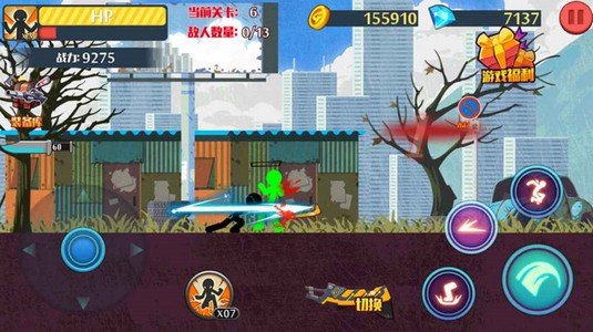突击火柴人是一款很好玩的格斗冒险游戏,这款游戏的玩法操作非常的简单。游戏中的场景画面非常的精美,游戏的玩法操作很简单,你可以去购买各种强大的武器打击你的敌人,推荐下载这款游戏进行游玩。