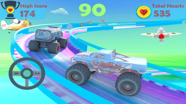 1、你将会在游戏中驾驶着各种好看的大轮子汽车与不同玩家进行比拼。
