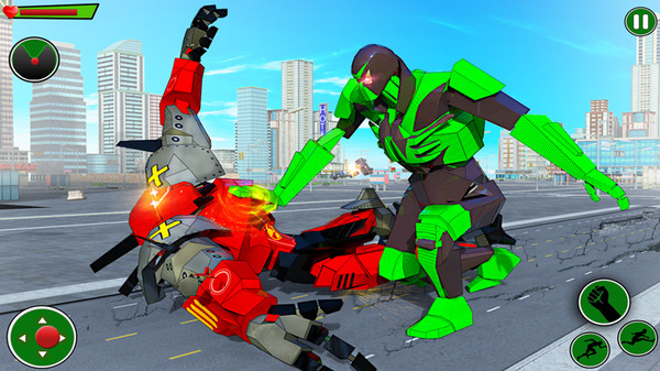 青蛙忍者英雄机器人是一款以类似蜘蛛侠的青蛙人为主的游戏。一个绿色的机器人在一个城市中利用手中的绳索在高楼之间不断的穿梭,寻找邪恶的机器人进行消灭。喜欢的玩家快点下载吧。