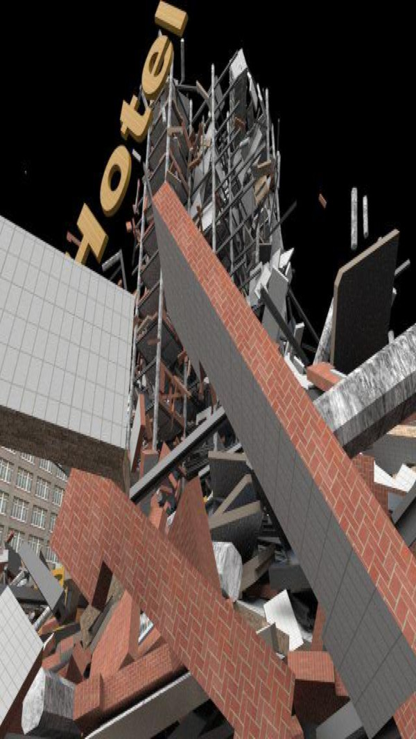拆除模拟使用了一个现实的物理和布偶引擎背后的一个三维图形引擎。使用TNT、RDX和其他材料制成的炸弹。塔内的爆炸摧毁了地基,使其倒塌。