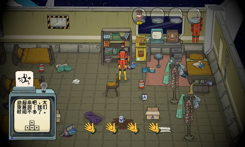 1.这款游戏的背景是太空,你将要从即将爆炸的空间站逃生,需要在限定时间内跑到逃生飞船,在去未知区域之前需要带上一些必要的物品;