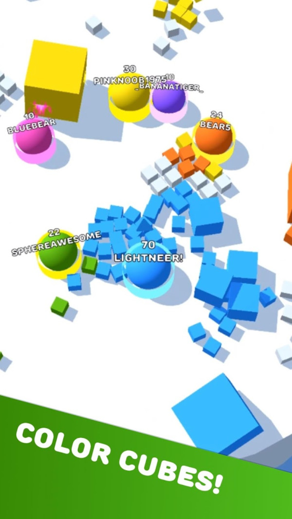轻松io游戏学习,但很难掌握! 将球拖到立方体上以变色并变大自己。