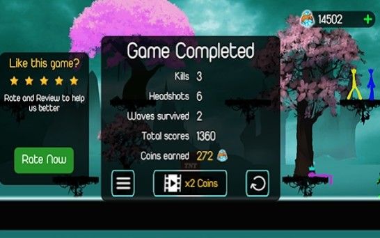 经典的火柴人风格画面,如果你是一个火柴人迷,那么就一定不能错过,依然延续了前作的玩法,但是更有趣,拥有40个高难度的关卡设计,让玩家们可以在极度惊险的挑战中度过一段开心的时光,帮助你消磨时间,有很多的武器可以使用,霰弹枪、狙击步枪、激光枪等,自由的解锁选择,展开惊心动魄的战斗
