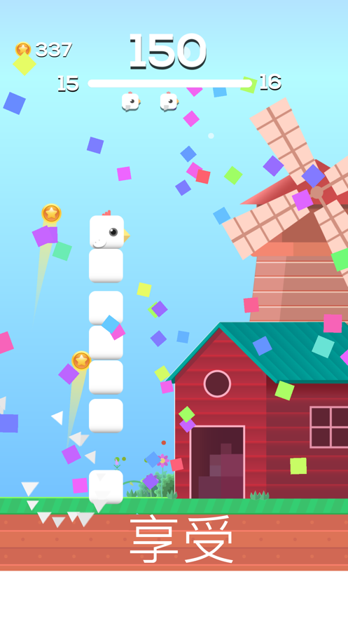 来建造你的蛋塔并通过障碍物。但是一定要当心!把握好时机并控制好塔的高度,尽量让过程变得顺畅。三次完美的着陆可以触发狂热模式让你所向披靡,顺利通关!