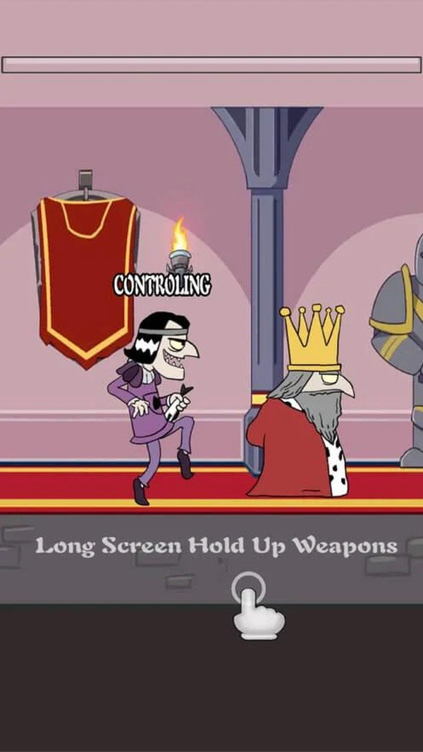 很有新意的恶搞题材,玩家想杀掉皇帝肯定不是简单的,每次都会在最后一刻被发现,利用身边的各种道具,还可以利用宫廷里的侍卫等等,但是皇帝总会警觉起来,要想杀死皇帝,你一个人是不行的,最好联系好大臣和亲卫军一起合作,商量对策。