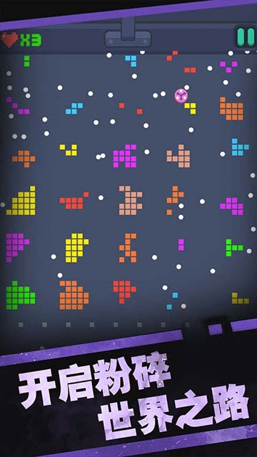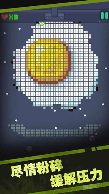 拖拽挡板,调整好要发射的角度,松手发射小球,让小球击碎上方的像素画作。利用好每一次的发射。游戏中,多种好用的道具可供使用,有小球翻倍、增加小球、增加体力等道具。合理的运用好这些道具,轻松过百,努力过千,轻松的挑战所有关卡!