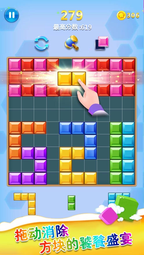 2、手指轻松的拖动即可操作控制,拼成完整的行或者列可消除得分;