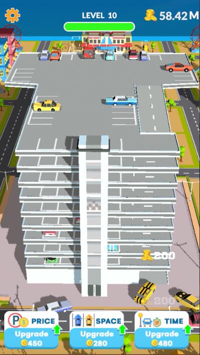 2.可以依照自己的风格设计停车场的玩法,利用下面的三个冉选项中所代表的服务使用得到的金币提升服务能力。