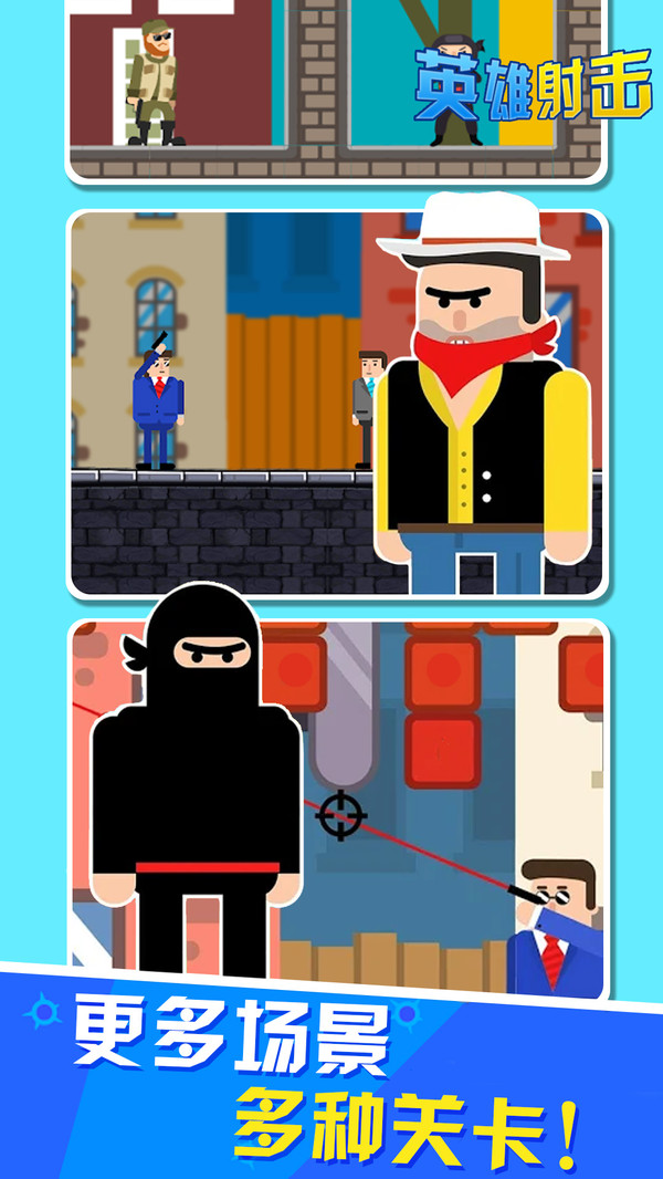 英雄射击是一款趣味休闲射击游戏,这款游戏中拥有超多的游戏关卡让你去挑战,游戏中拥有多个角色让你选择进行闯关,游戏的玩法内容很简单趣味,一只手就可以操作随时让你去体验它的乐趣。