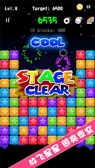 1、很轻松刺激的消除玩法模式,大量星星全屏消除;
