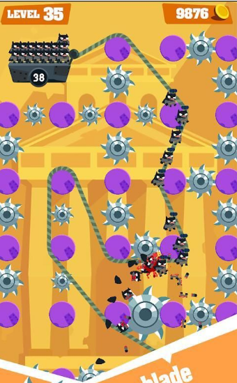 b、紫色的球球之间是不会切断绳子的,不过齿轮太过锋利。