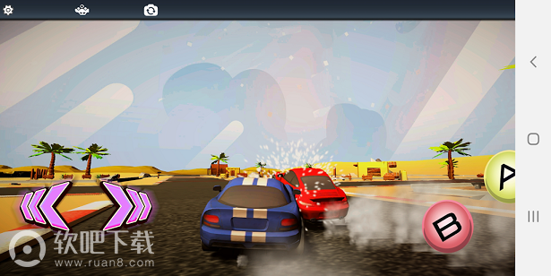 整个赛车掌控是非常的简单的,3个虚拟按钮搞定;
