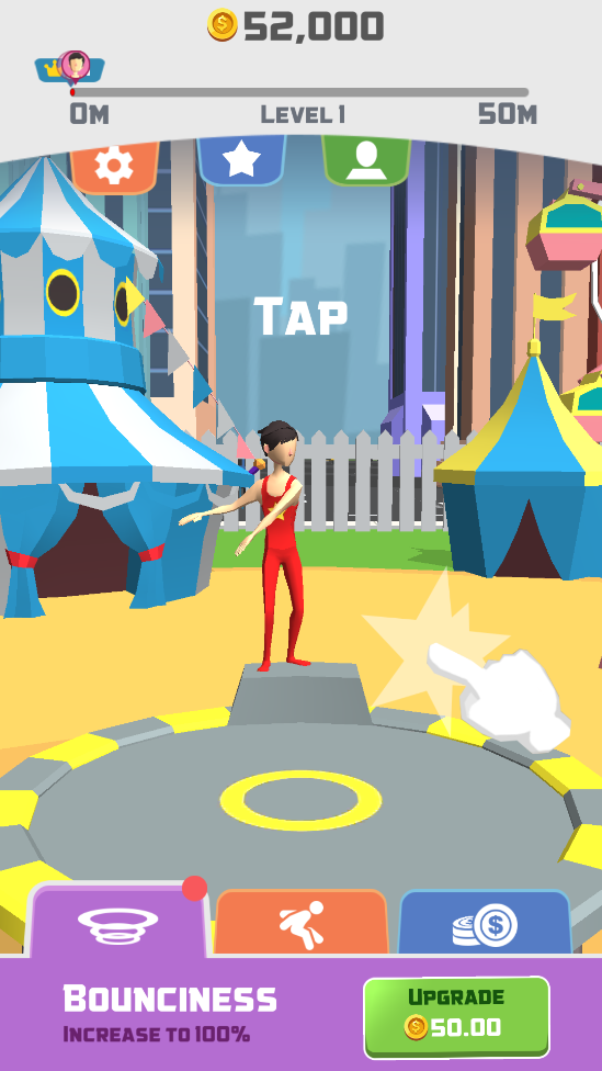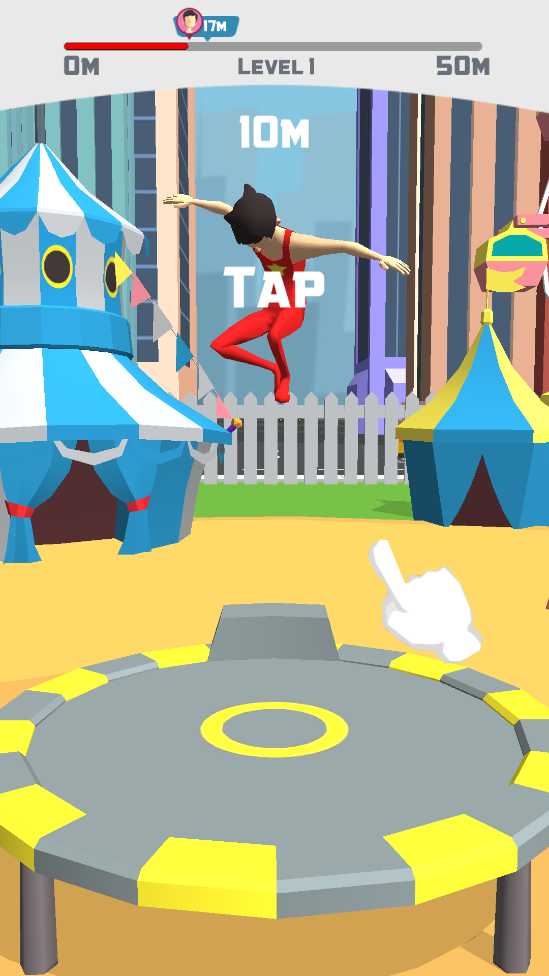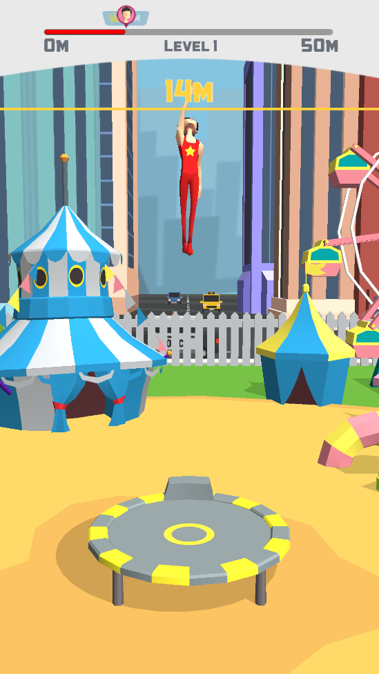 超级蹦床明星是一款超级有趣的休闲游戏,挑战你的手眼协调,游戏中你可以通过点击将蹦床跳到空中并再次点击它,然后你的跳星回到蹦床重复,直到你的超级跳星到达银河系最远的角落,这时候能吃到大量的金币和道具,很容易获得高分!