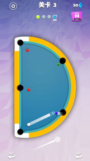 1、游戏中拥有丰富的游戏关卡,每一个的球桌都不同;