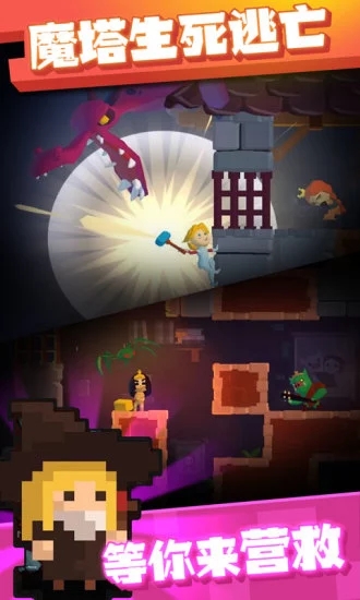 魔塔逃亡一款游戏背景极为经典简单的休闲动作类游戏。游戏开始是因为公主被恶龙绑架囚禁于高塔之上,但前来的勇者未能成功打败恶龙,拯救公主反而被恶龙嘎嘣脆了,公主拾起来勇者的武器,开始自己寻找逃生的机会!