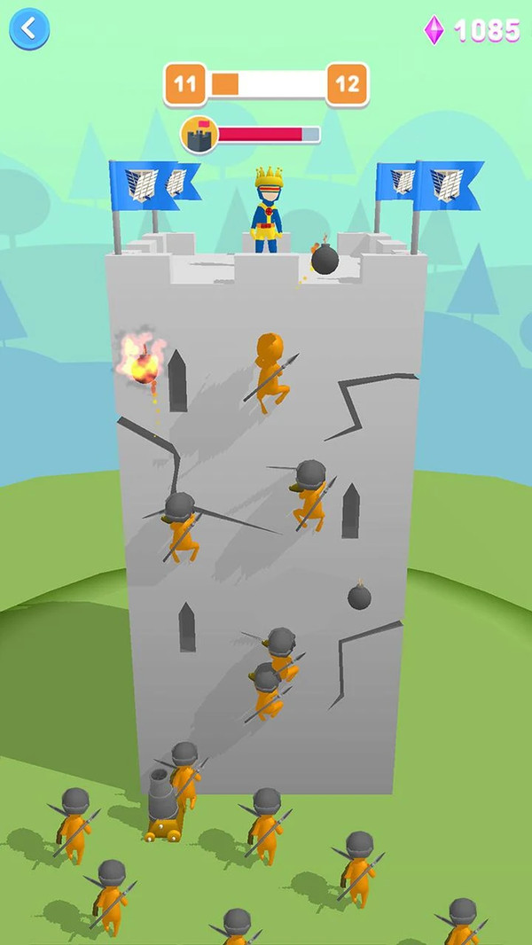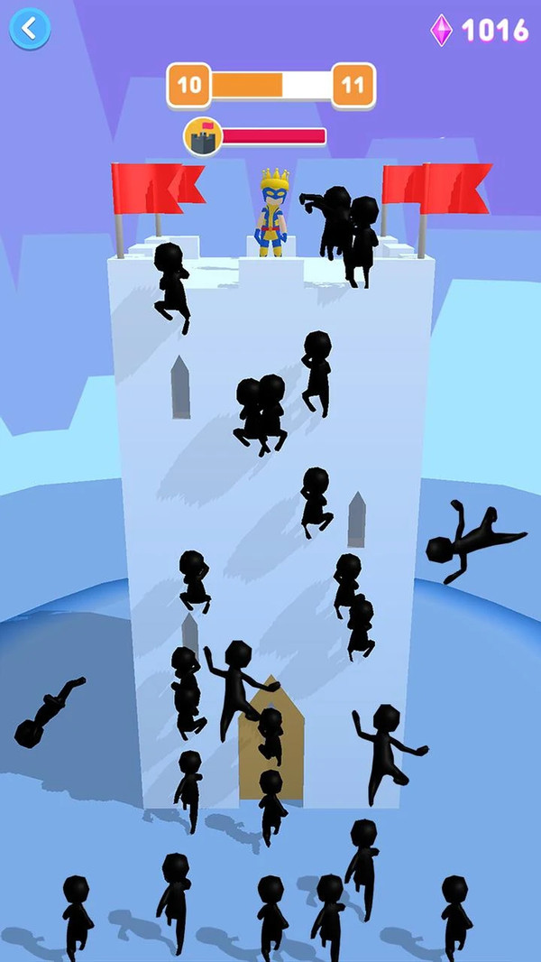 3、不断的将你眼前的火柴人扔下去,不断的攀爬,去勇敢的拿去皇冠吧。
