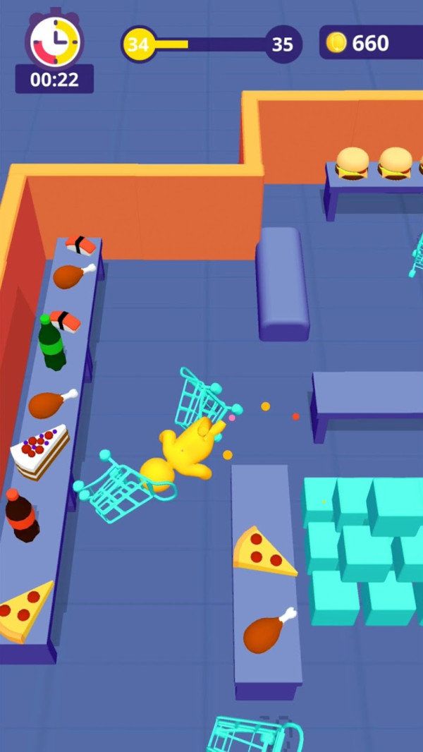 采用了十分可爱的橡皮人游戏画风,超多的关卡等你来挑战,随时注意躲避各种障碍,如果被绊倒的话,会浪费你很多的时间。食品都被摆放在指定的位置,找到后就尽快的将其带回规定区域吧。
