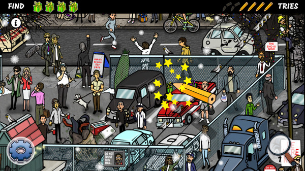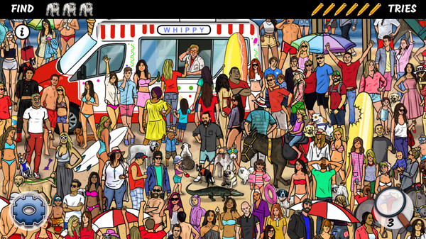 派对搜索是一款考验玩家眼力的游戏。游戏中的画面中的内容非常的丰富,想要一下找到目标物是非常不容易的,利用手中的放大镜在人群中快速的寻找自己的目标。喜欢的玩家快点下载吧。