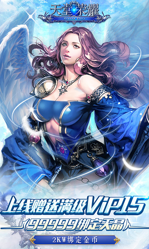 2、上线赠送满级Vip15,99999绑定天晶,2KW绑定金币,属于你的荣耀终将回归;