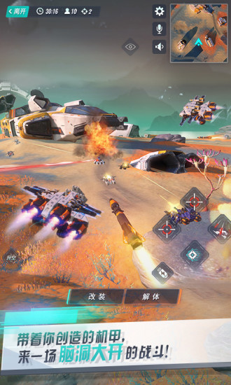 多人组队,激烈团战。团队配合,相机行事,设计你的战斗机器,引领团队走向胜利!