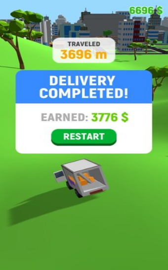 送货也疯狂游戏是一款趣味闯关类的休闲游戏 ,玩家将驾驶货车前往指定的任务地点,崎岖的山路会把货物全部甩飞,要注意控制速度尽量寻找最平坦的路面通过,行驶的距离越远所能得到的金钱就越多,多样化的地形让闯关乐趣提升,升级汽车来应对所有难关。
