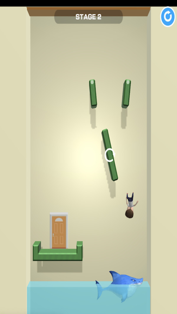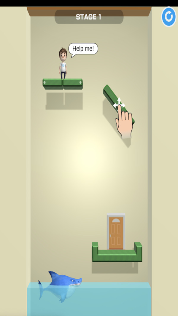 在关卡中人物角色将被困在危险的障碍上,并且底下还具有鲨鱼不时地游动,大家需要依靠你们的聪明和才智,通过顺利地移动寻找正确的未知,顺利的将所有的角色救援下来即可顺利通关。