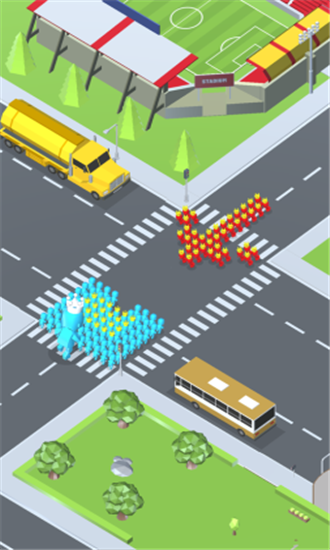 1、游戏中的玩法看起来是非常的暴力,遇到与你颜色不同的队伍就打,没有任何的原则。