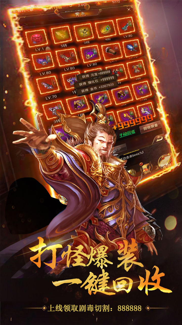 2.开局赠送38888元宝,888万金币,各种福利欢乐,精彩放送!!!