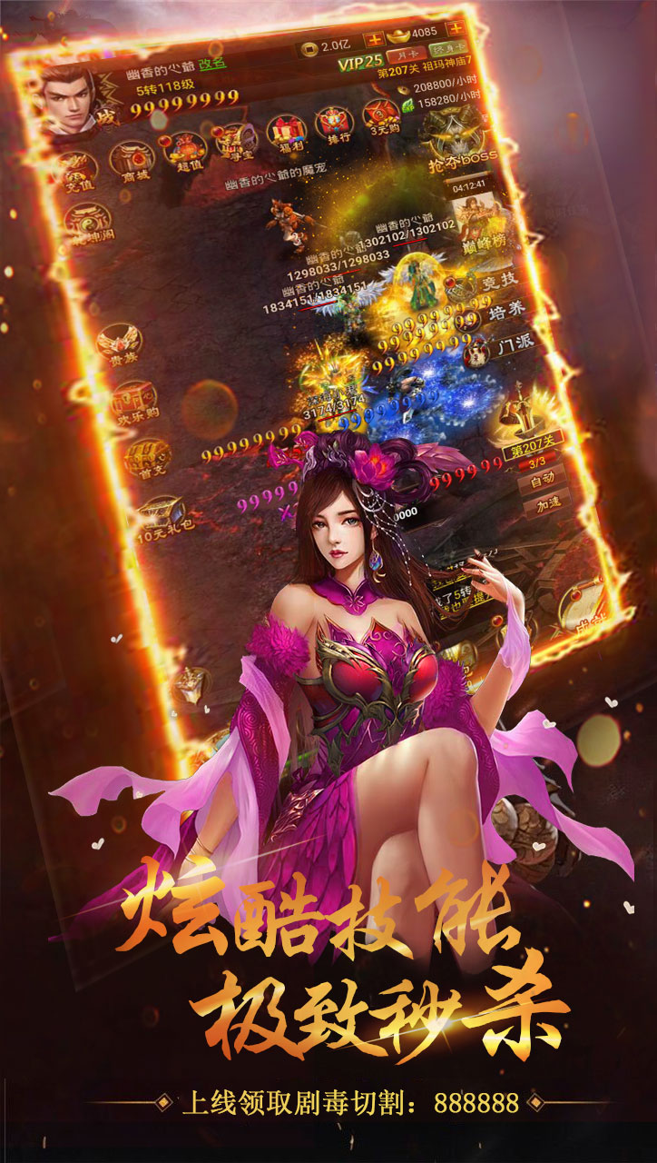 1.上线就送V18,享受超级vip特权,让您打BOSS快人一步!