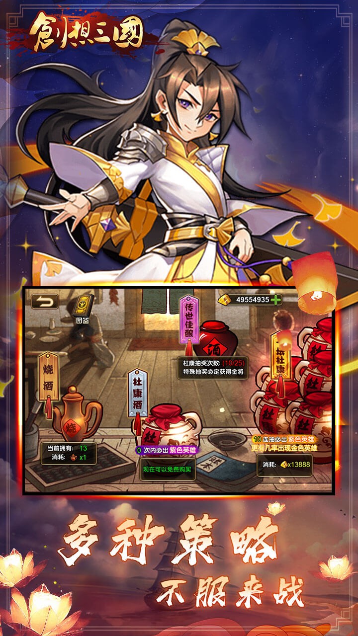 一款三国题材的策略卡牌游戏,游戏中加入了众多军团战斗的玩法模式,并具有华丽炫酷的技能释放秀出你的操作请教,并可以感受到武将厮杀带来的爽快感,可以助大家完成需求,秀出各种专属的技能。