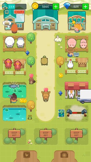 看来这不是一个完整的游戏,基本流程就是买动物-产出-产出物放仓库-卖出。但是仓库极易满(不看广告的话,好像广告也没实装),也就是卖的速度远远小于产出速度,无法正常进行游戏。就酱