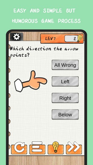 游戏名可以说是非常契合了,整款游戏都是关卡模式,每一关都在用它独有的方式刺激玩家的脑洞,不走寻常路,通关方法往往令人猝不及防,智商散落一地!